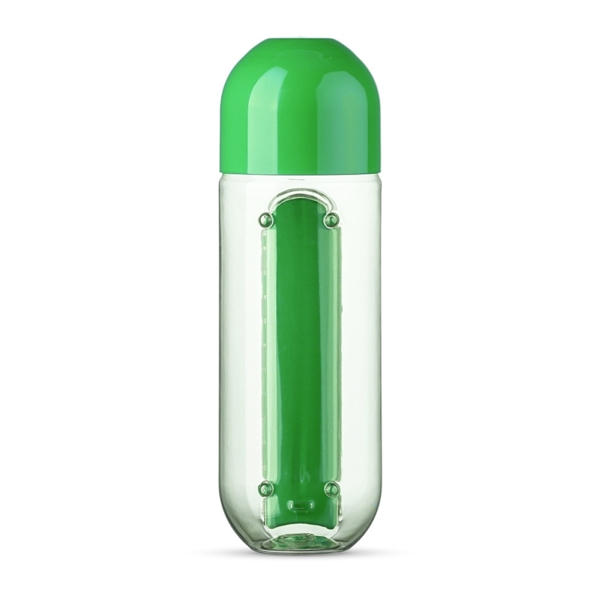 Descrição: Squeeze 700ml plástico com porta comprimido. Garrafa transparente com encaixe para bandeja de comprimidos colorida, especificado por siglas referente os dias da semana, possui quatro “pézinhos” no qual auxiliam o squeeze a fica na posição horizontal. Tampa rosqueável colorida.