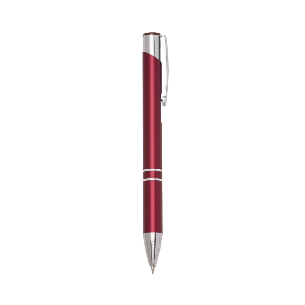 Descrição: Lapiseira metal inteira colorida com detalhes prata. Clip metal com a ponta do acionador na cor da peça, parte inferior com dois anéis prata. Aciona por clique.