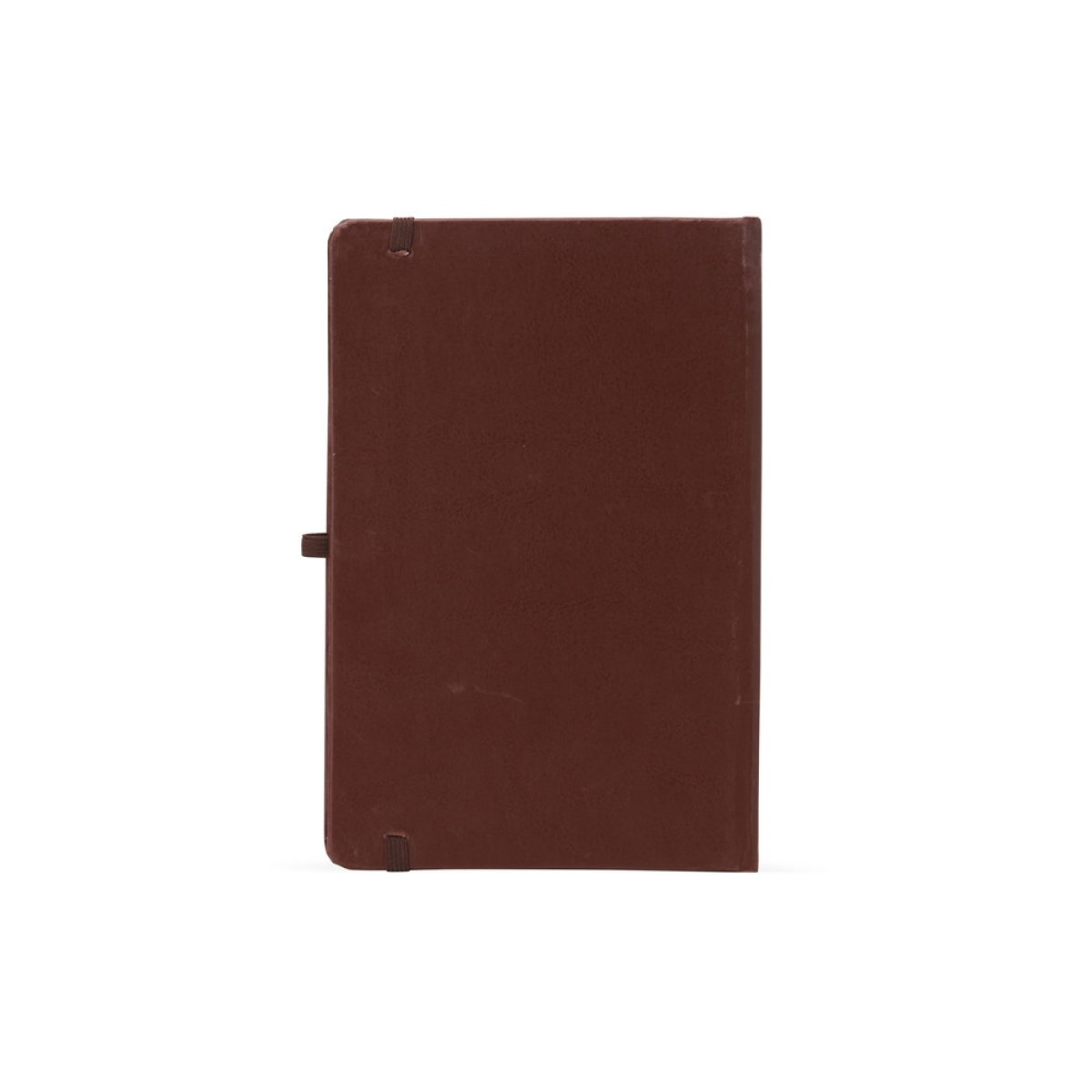Descrição: Caderneta de couro sintético com suporte para caneta, elástico para lacre e marcador de página em cetim, contém aproximadamente 80 folhas com pauta na cor branca.