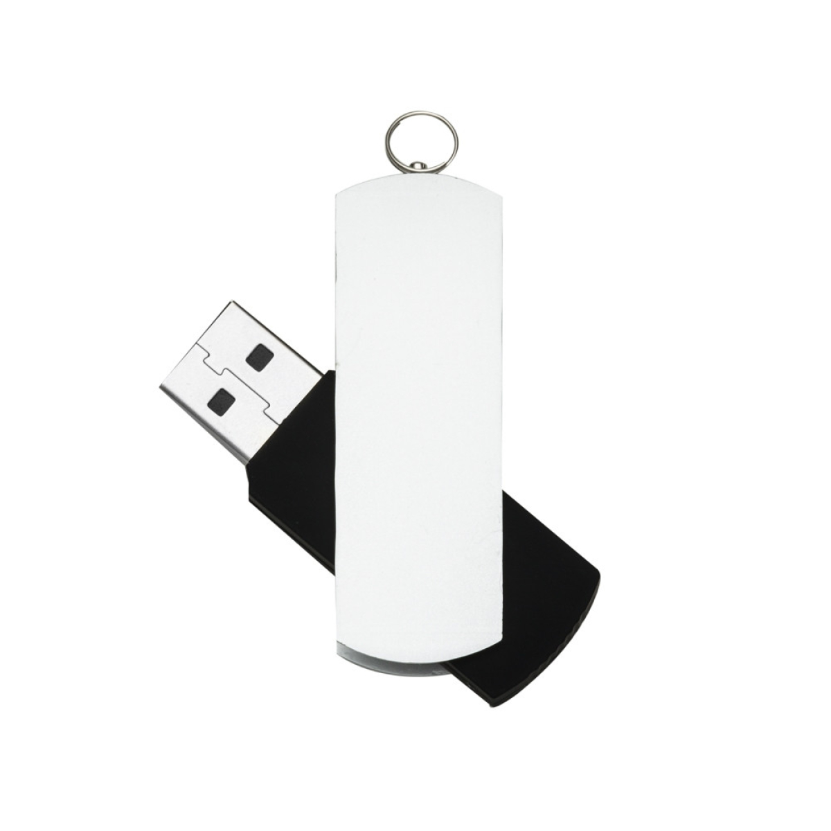 Descrição: Pen drive giratório 4GB/8GB metal fosco com argola para chaveiro e parte interna preta emborrachada.