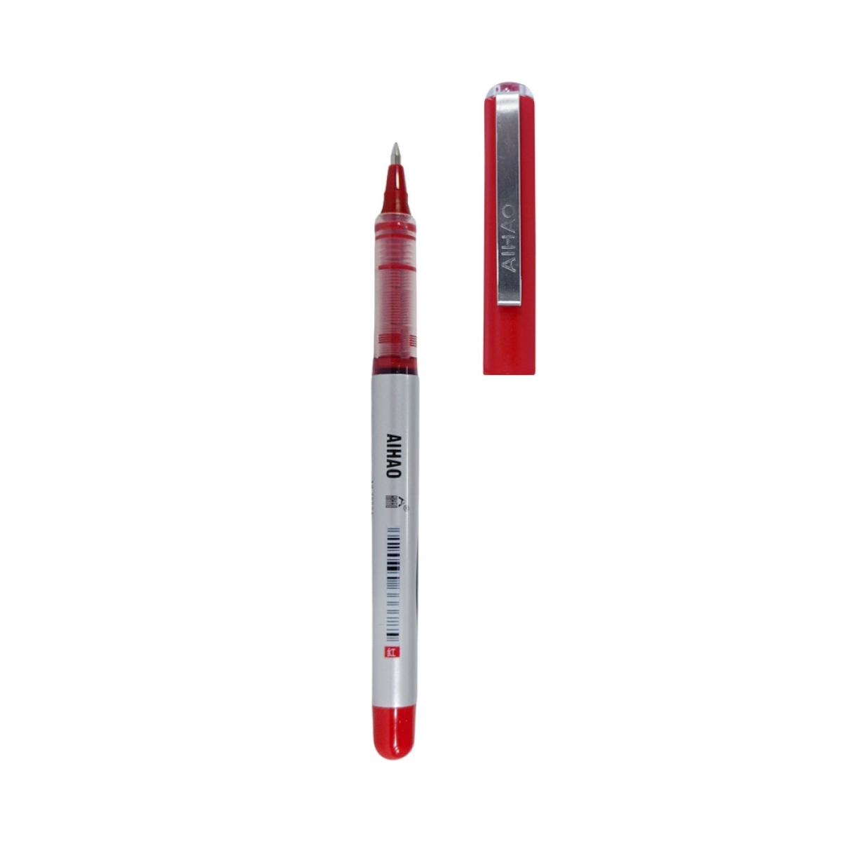 Descrição: Caneta plástica com tampa, carga rollerball nas cores azul, preto e vermelho.