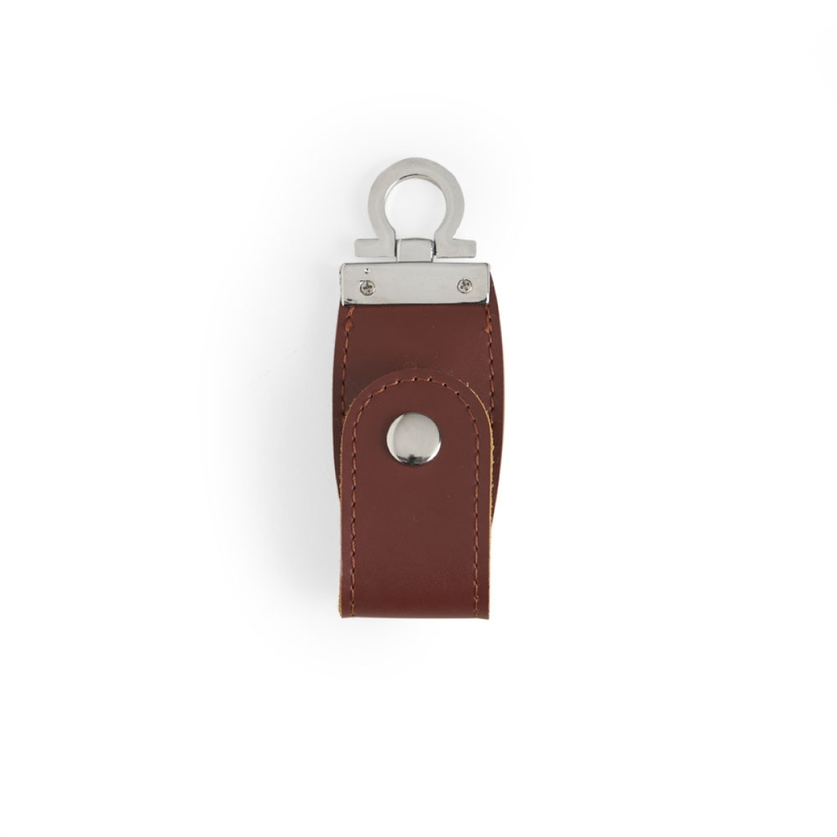 Descrição: Pen drive 4GB/8GB/16GB de couro sintético com costura, possui botão e detalhes prata(verso liso). Parte inferior possui “argola” para utilizar como chaveiro.