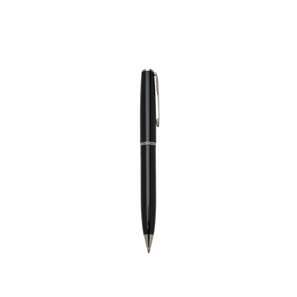 Descrição: Caneta metálica com carga esferográfica azul e acionamento por rotação. OBS.: PEDIDO APENAS MÚLTIPLO DE 15 PEÇAS!