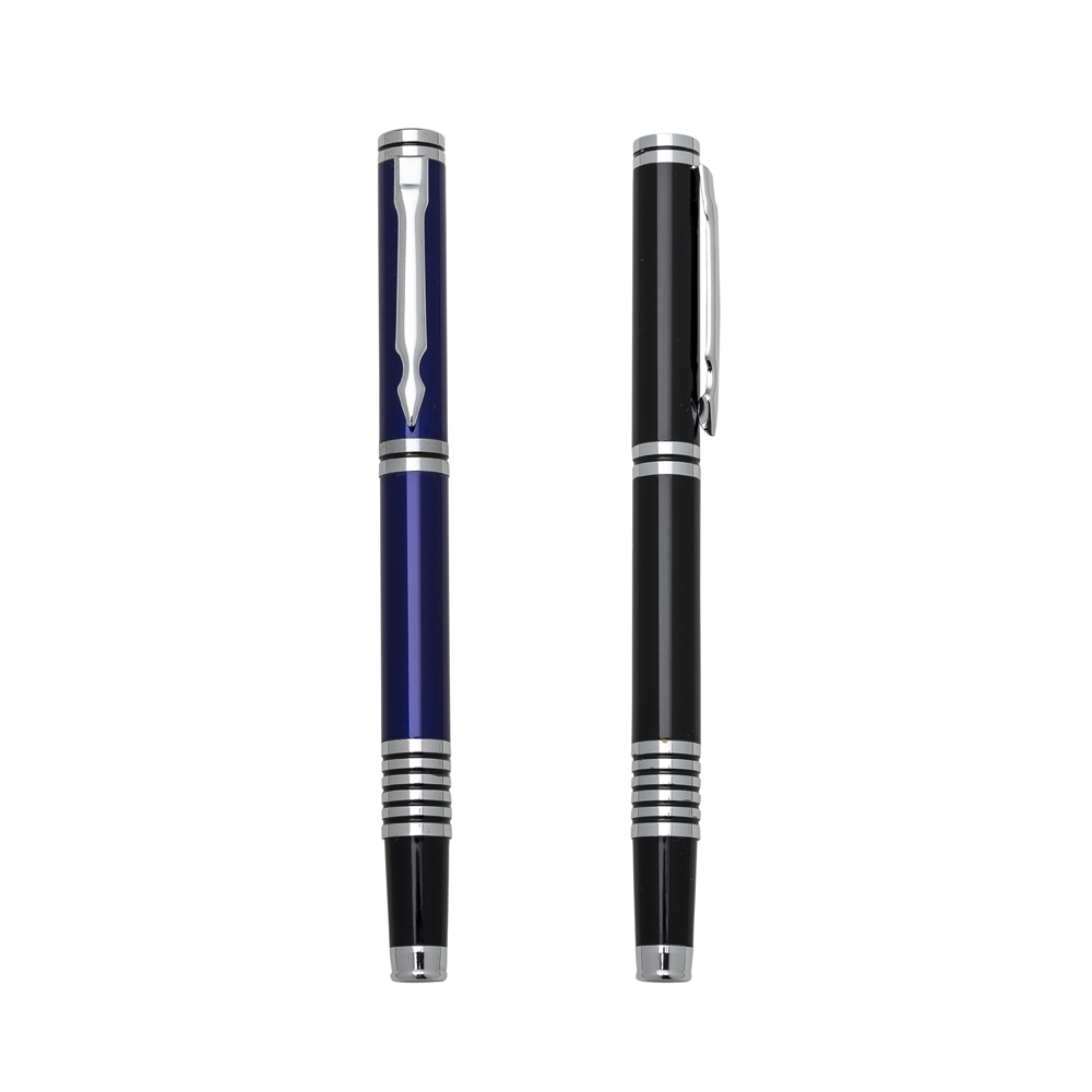 Descrição: Caneta metal com tampa, carga rollerball preta. OBS.: PEDIDO APENAS MÚLTIPLO DE 15 PEÇAS!