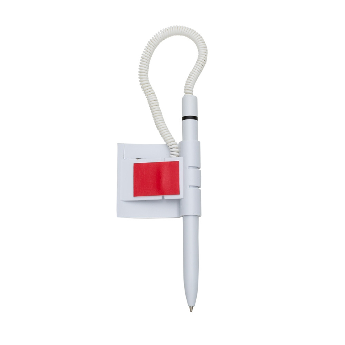 Descrição: Caneta balcão plástica com suporte e adesivo auto colante. Carga esferográfica azul. QUANTIDADE MÍNIMA DE 100 PEÇAS!