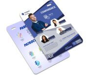 Acabamento(s) padrão(ões): FACA E FURO OVOIDE CREDENCIAL 100X148, SEM CORDÃO E SEM CLIP JACARÉ, VERNIZ TOTAL BRILHO FRENTE