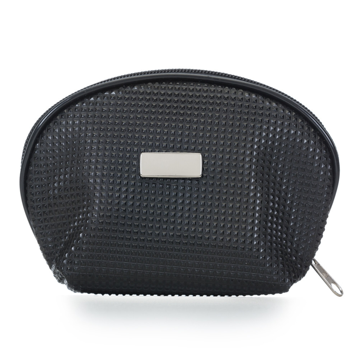 Descrição: Necessaire em couro sintético texturizado com uma placa central para personalização. Parte interna revestida com cetim.