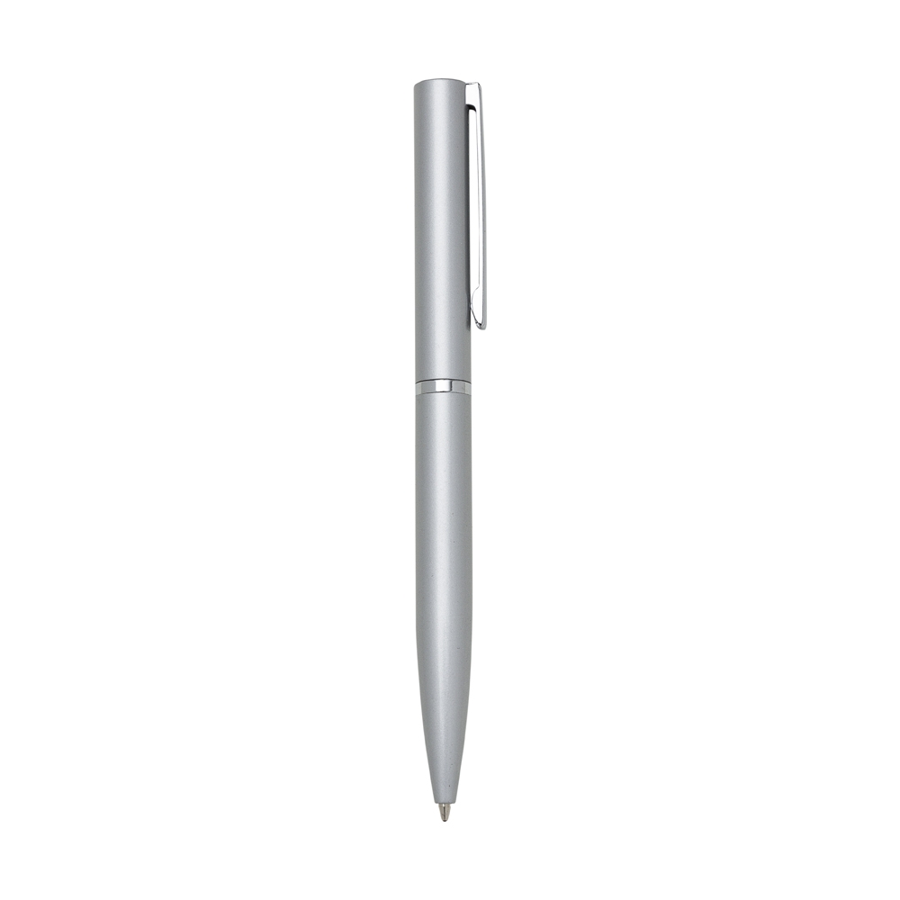 Descrição: Caneta semimetálica com carga esferográfica azul e acionamento por rotação. OBS.: PEDIDO APENAS MÚLTIPLO DE 50 PEÇAS!