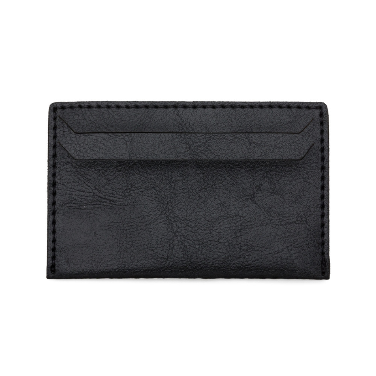 Descrição: Porta cartão em couro sintético com duas divisórias frontais, verso liso.