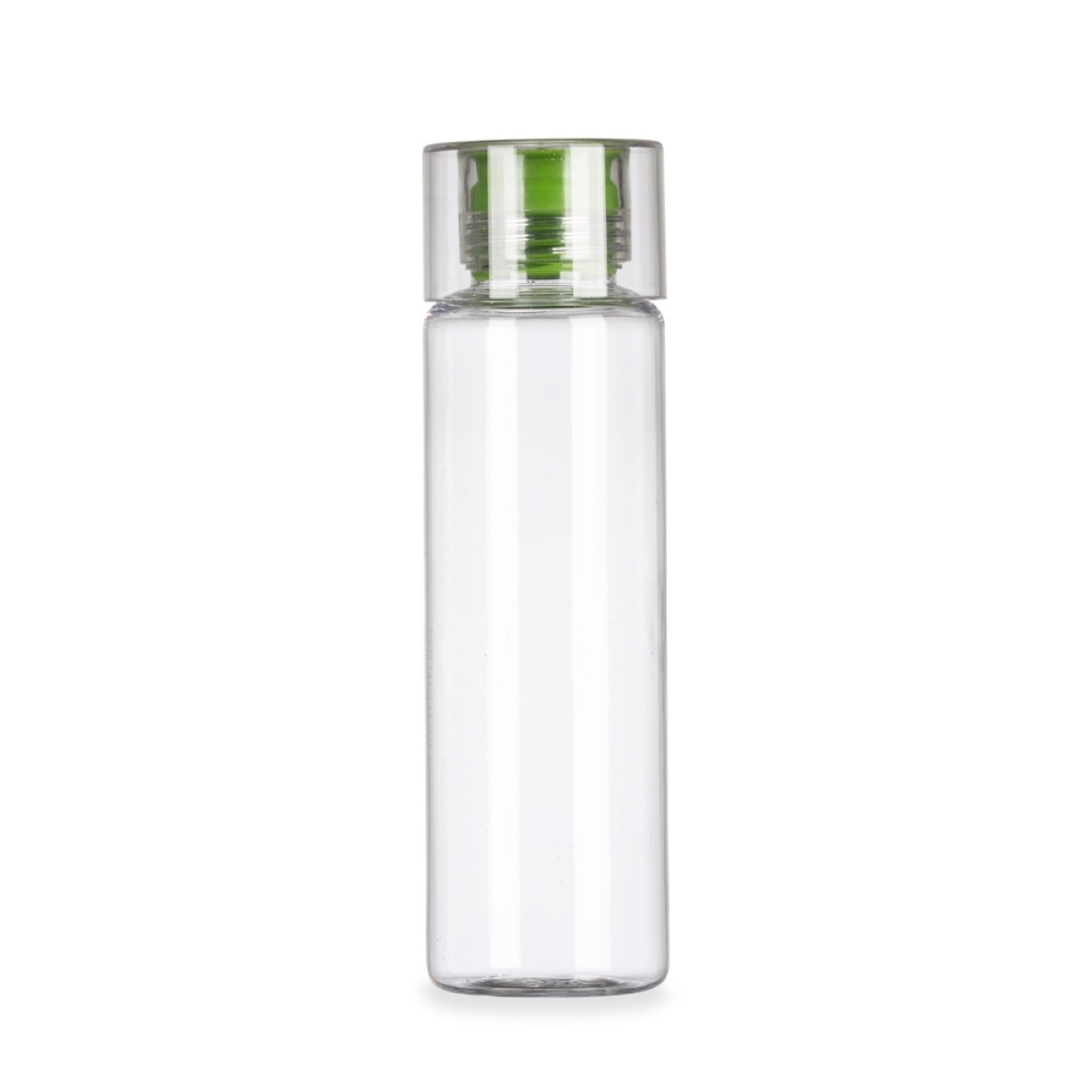Descrição: Squeeze plástico 600 ml com tampa rosqueável. Material plástico transparente com tampa, possui bico/tampa interna emborrachada colorida. Ambas rosqueáveis.