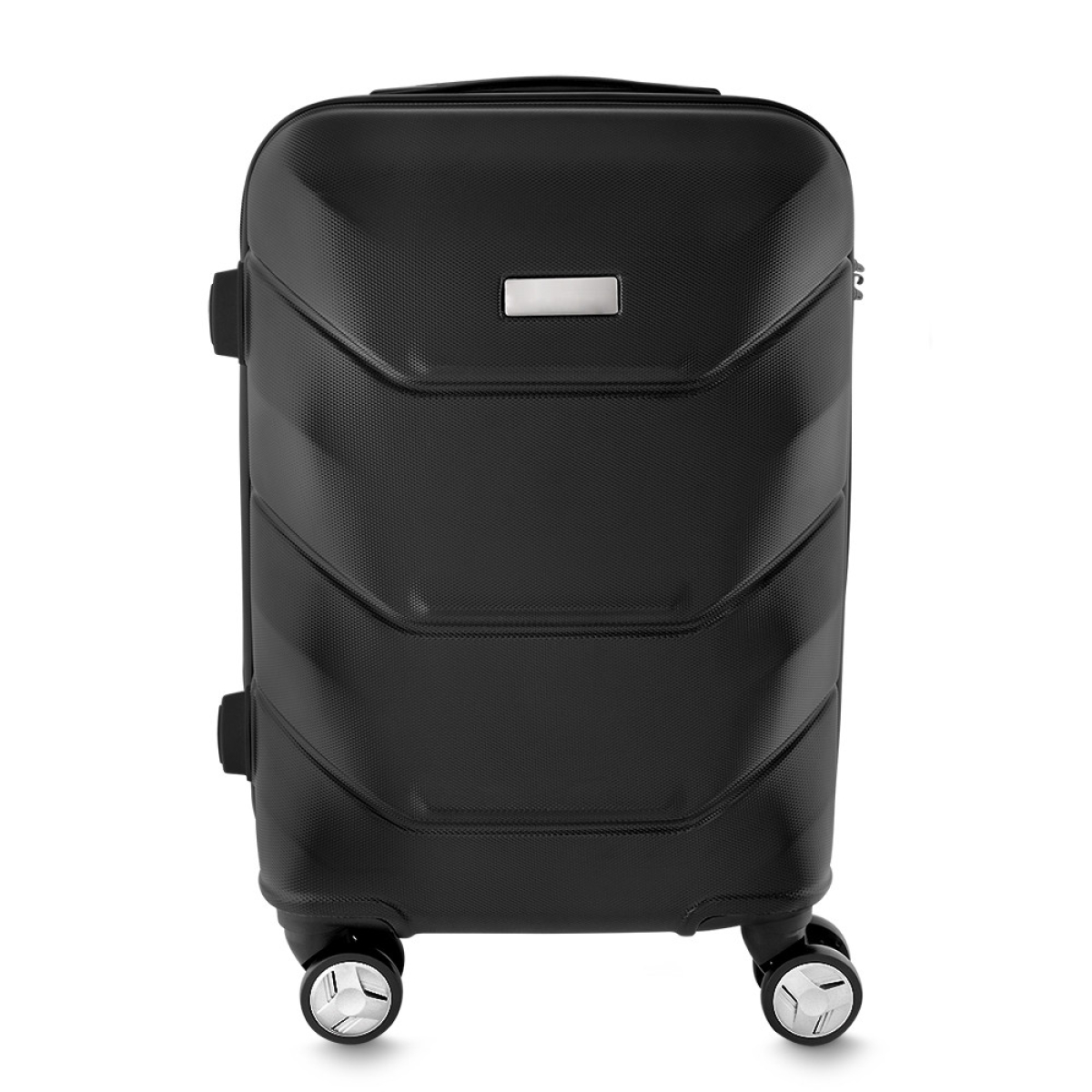 Descrição: Mala de viagem média confeccionada em ABS com trava de segurança. Possui quatro rodinhas e apoiadores com borracha anti-deslizante para posicionar a mala na horizontal, alça de carrinho com botão para ajuste de tamanho; placa central para personalização; forro de poliester e compartimentos internos de zíper além de um cinto protetor.