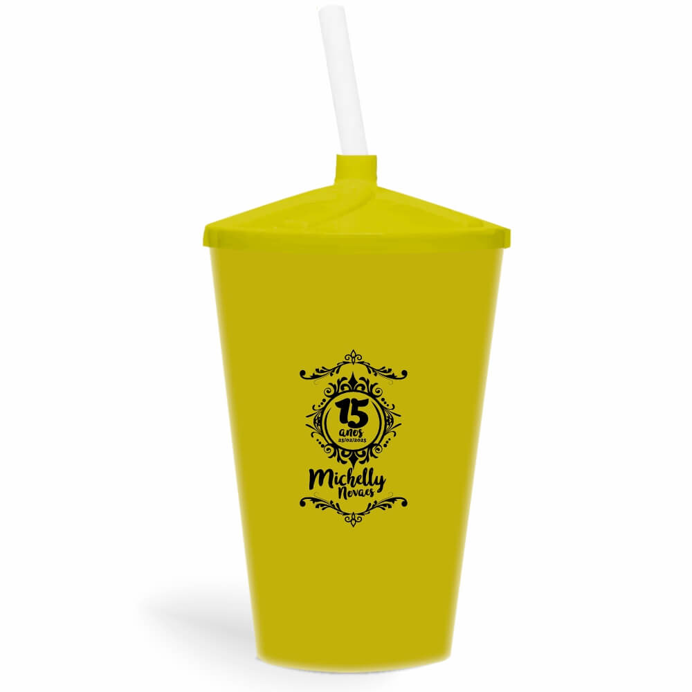 Acabamento(s) padrão(ões): LEITOSO AMARELO, TAMPA AMARELA E CANUDO TRANSPARENTE