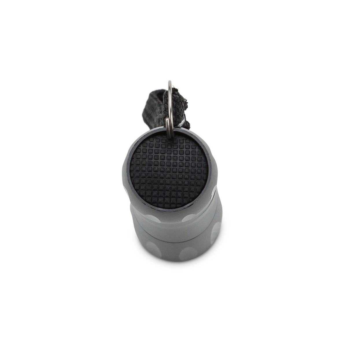 Descrição: Lanterna de alumínio com alça. Possui um led acionado através do botão emborrachado e alça para transporte em nylon. Compartimento do botão desrosqueável para inserção de uma unidade de pilha AA(não inclusa).