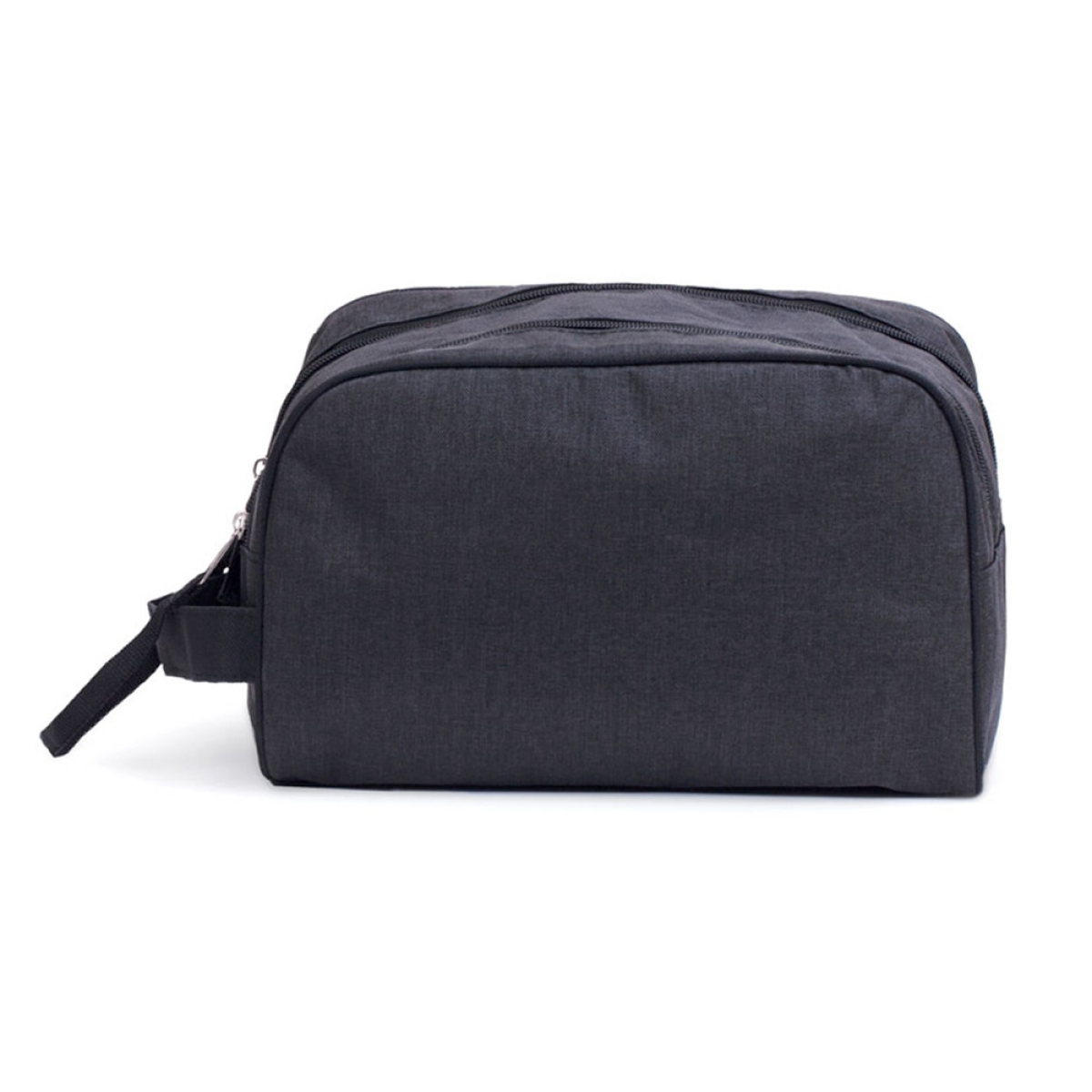 Descrição: Necessaire confeccionada em poliéster com zíper duplo e trava de velcro. Zíper com “pegador” de cordão em nylon e alça para transporte.