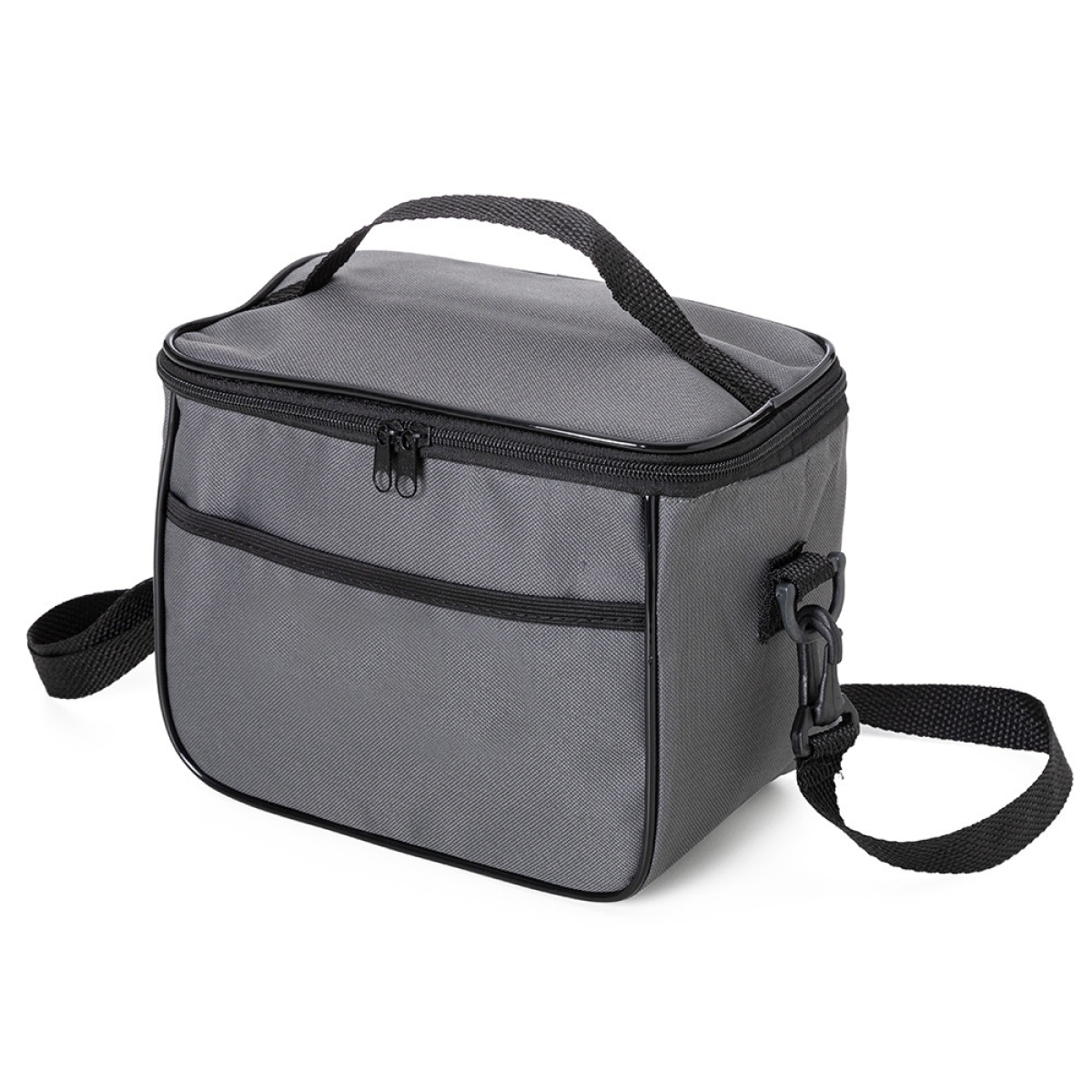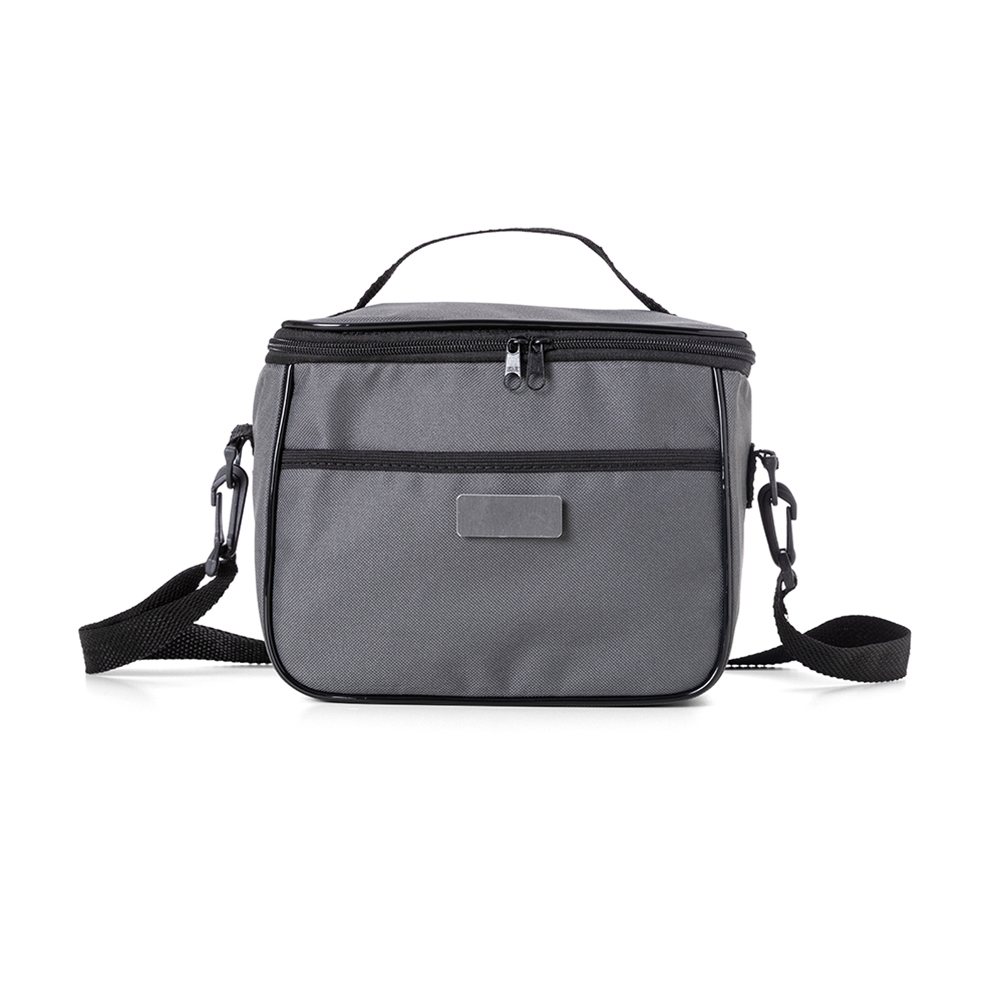 Descrição: Bolsa térmica 6 litros com bolsos externos e alça de mão em nylon, contém bolso frontal aberto e bolso traseiro com zíper. Acompanha plaquinha metálica e alça transversal regulável com mosquetões para encaixe nas fivelas laterais da bolsa.