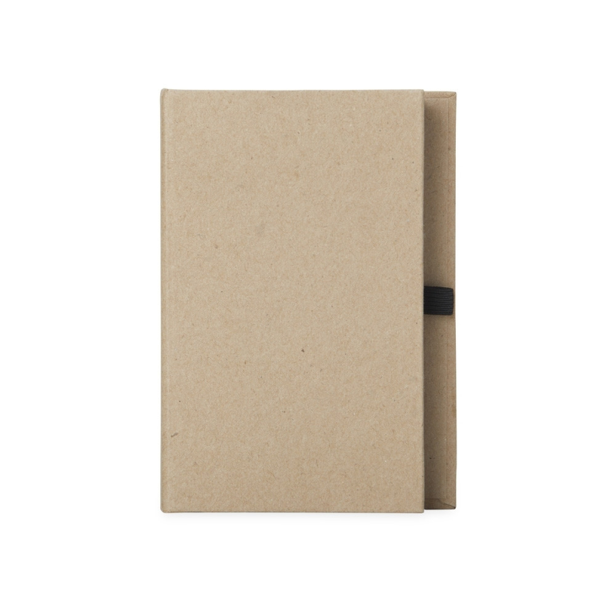 Descrição: Bloco de anotações capa dura em kraft com porta caneta e wire-o. Contém aproximadamente 100 páginas não pautadas na cor branca.