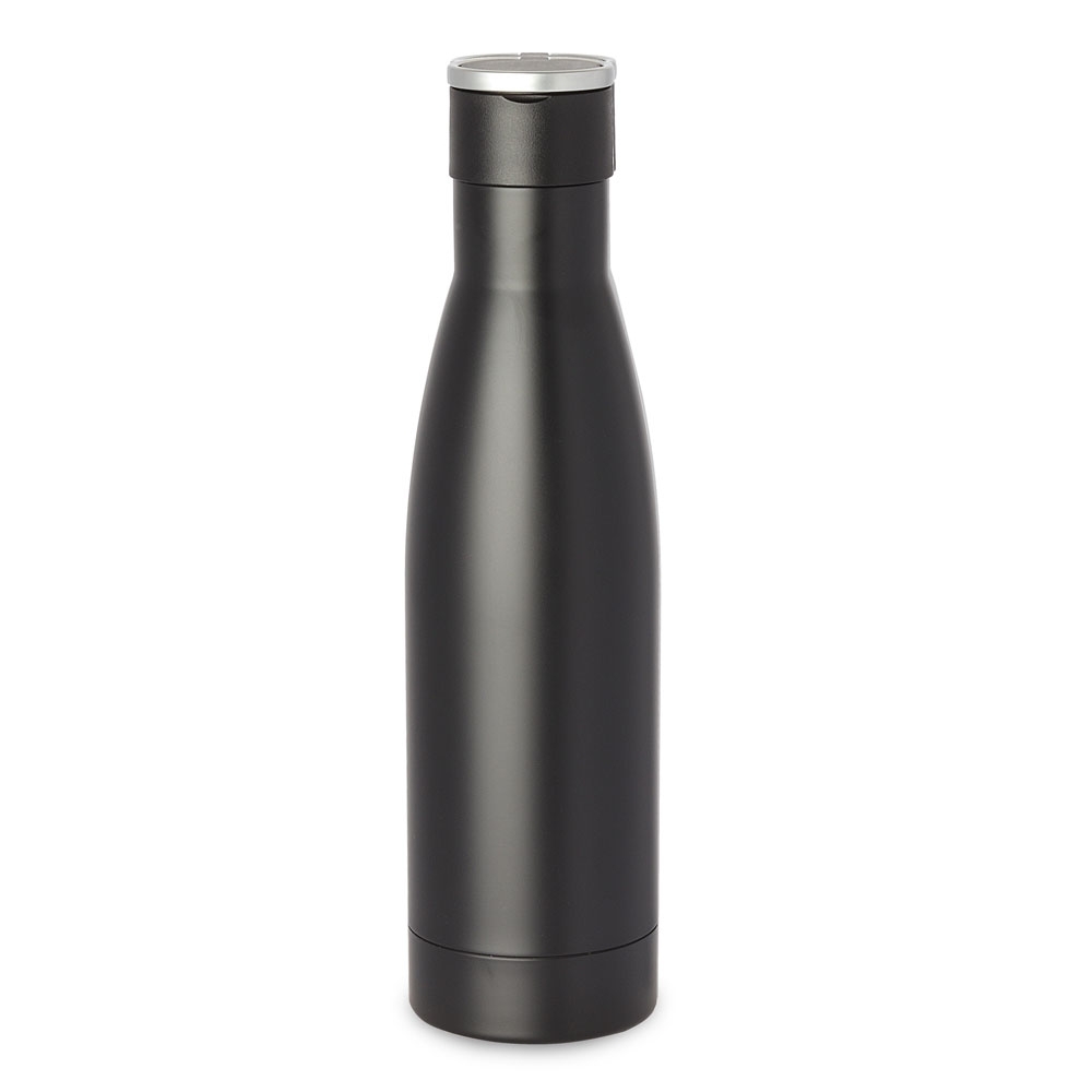 Descrição: Garrafa térmica feita em inox 304 de parede dupla com capacidade de 500ml, tampa plástica com alça para transporte.