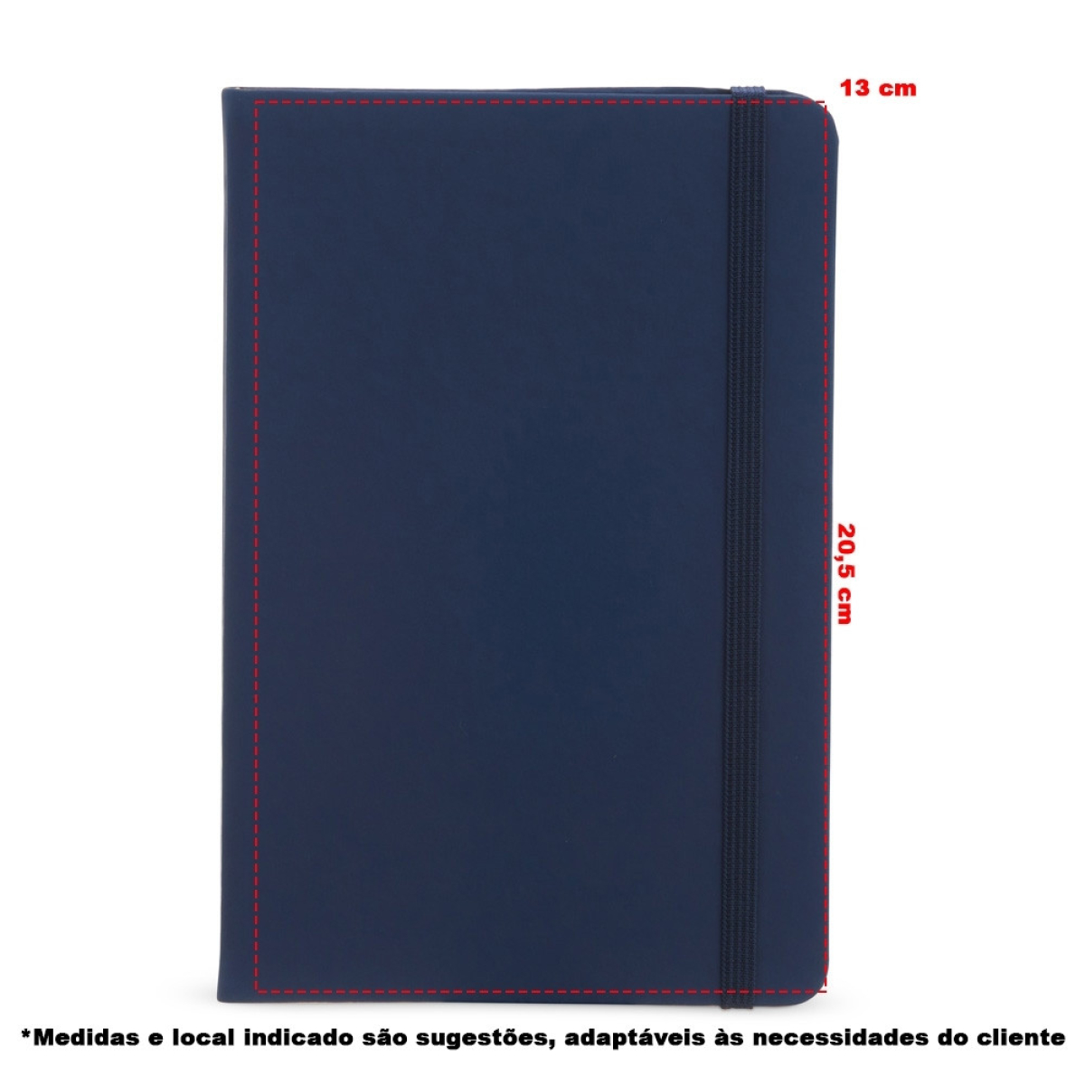 Descrição: Caderneta em couro sintético emborrachado, possui marca página em cetim e elástico para lacre. Contém aproximadamente 80 folhas marfim pautadas.