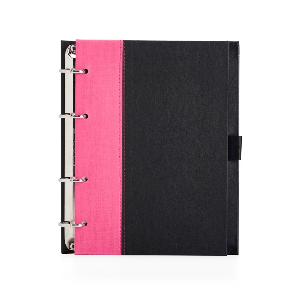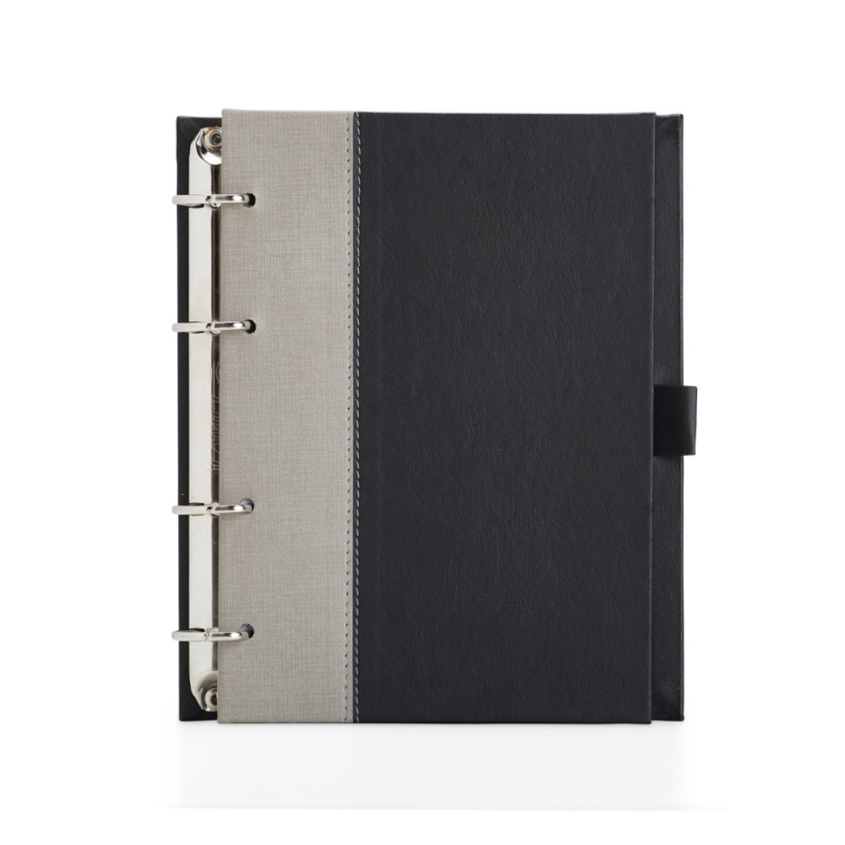 Descrição: Caderno fichário em couro sintético. Possui suporte na lateral para caneta ( não acompanha) e aproximadamente 100 folhas.