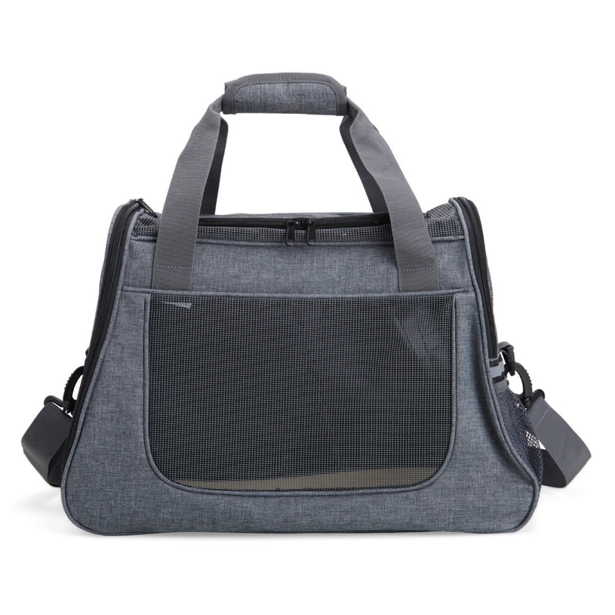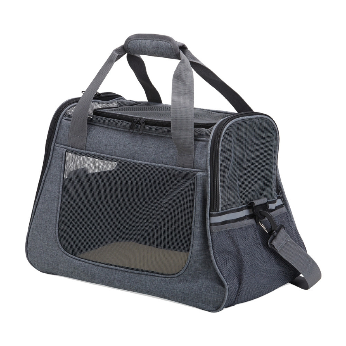 Descrição: Bolsa para transporte de pets, confeccionada em tecido Oxford com bolso lateral. Seu tapete dupla face, com uma camada aveludada, foi projetado para proporcionar o máximo conforto ao pet. Equipada com telas respiráveis em nylon, esta bolsa apresenta uma abertura superior e duas aberturas laterais com faixas refletivas, sendo uma delas com abertura completa, permitindo uma experiência de transporte arejada, com entrada e saída prática para o pet. As alças de mão, estrategicamente equipadas com suporte para junção, garantem conforto durante o transporte manual, enquanto a alça transversal proporciona um transporte ergonômico com distribuição mais eficiente do peso.