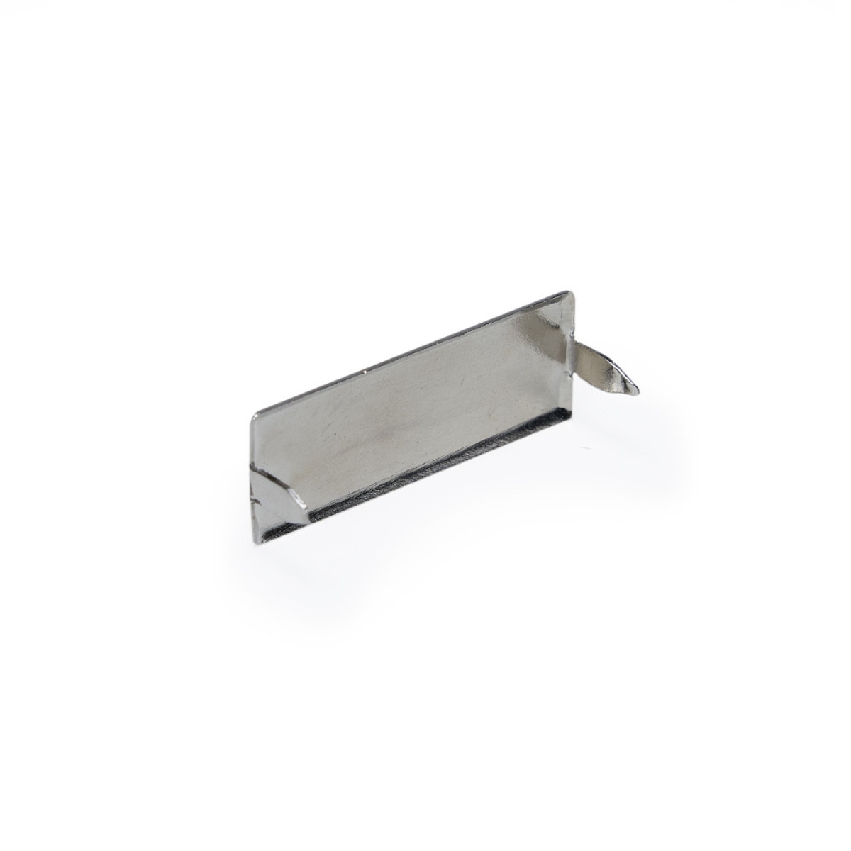 Descrição: Plaquinha metálica retangular para personalização. Possui hastes com ponta na parte traseira.