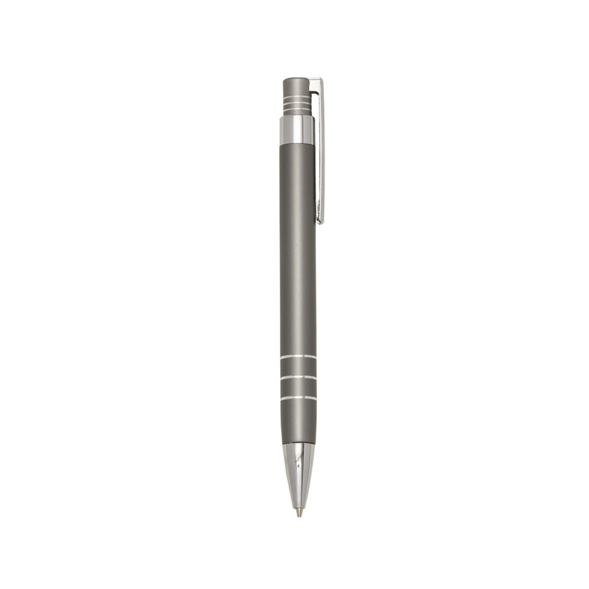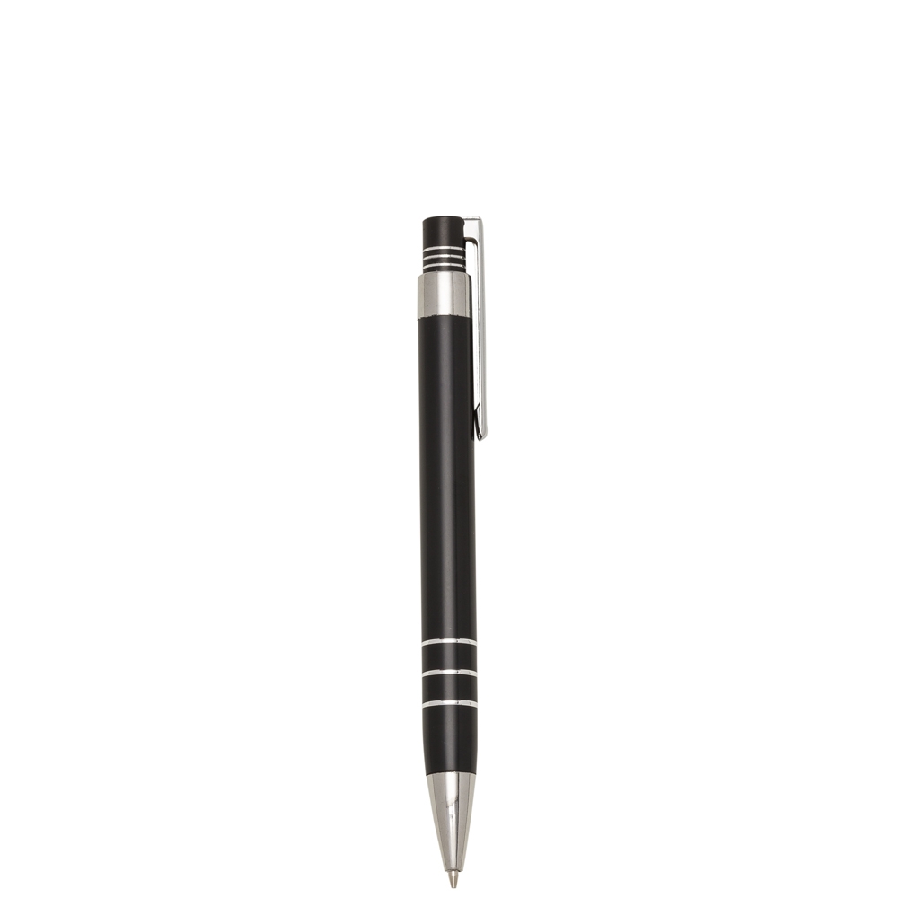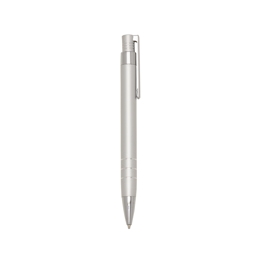 Descrição: Lapiseira metal inteira colorida com detalhes prata. Clip metal e com três anéis na parte superior e outros três na parte inferior. Aciona por clique.