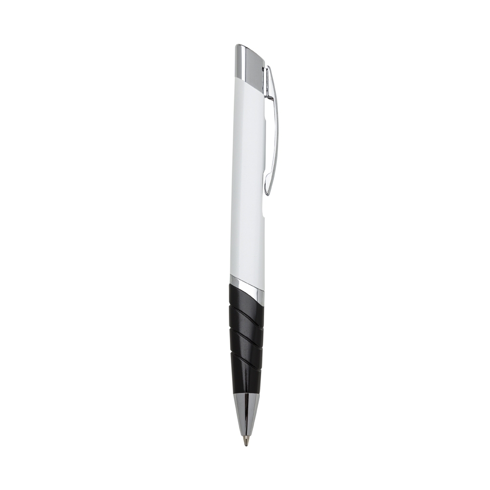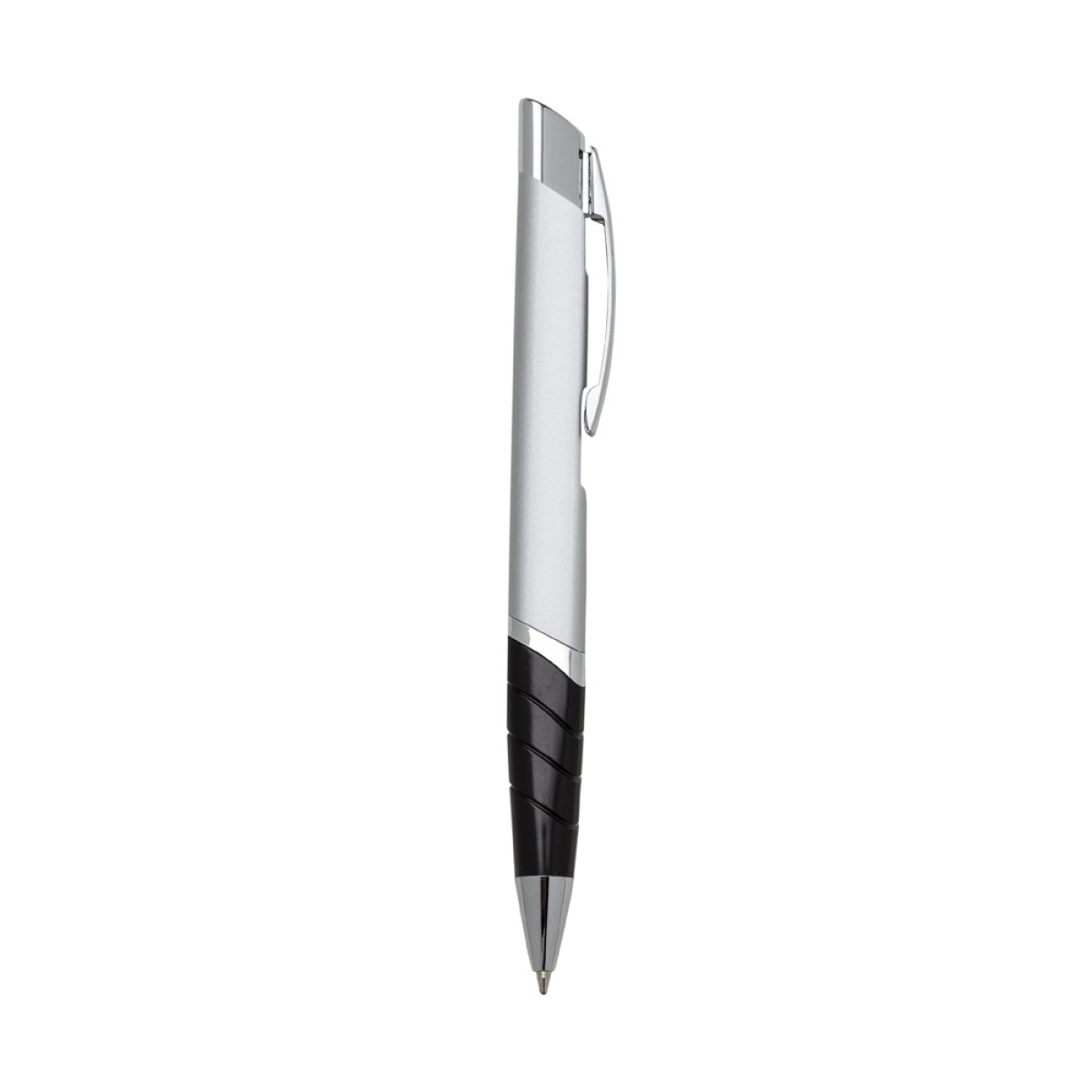 Descrição: Caneta metálica triangular com carga esferográfica azul e acionamento por clique.