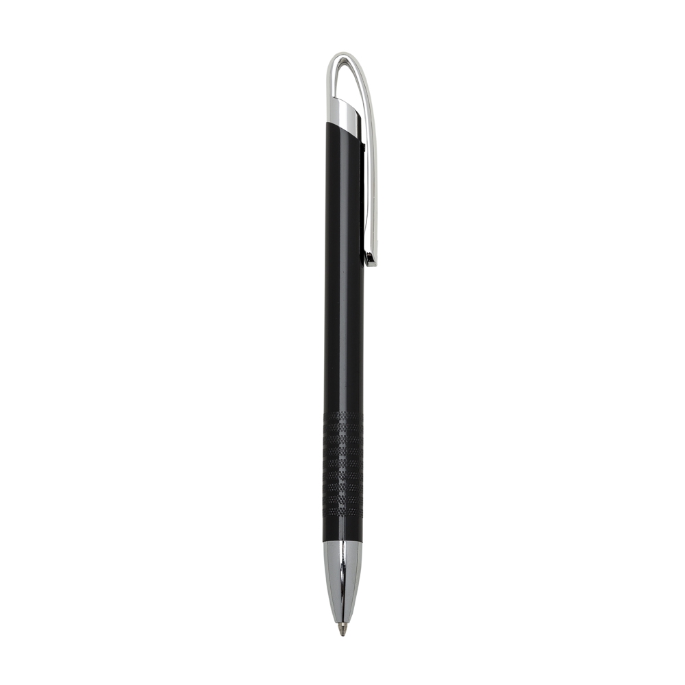 Descrição: Caneta semimetálica, carga esferográfica azul e acionamento por clique.