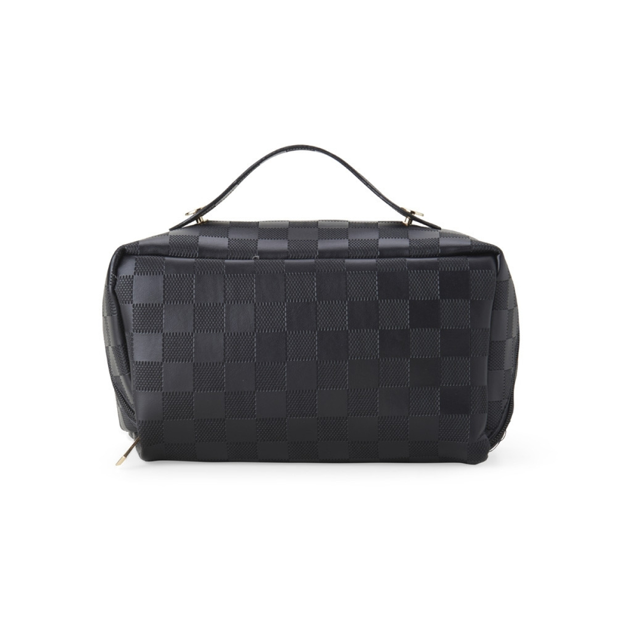 Descrição: Nécessaire com zíper e couro sintético. Possui abertura larga, 3 bolsos, 3 compartimentos para organização dos itens, alça superior e área de personalização em couro sintético.