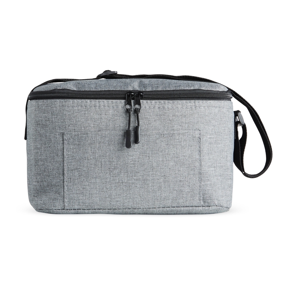 Descrição: Bolsa térmica 6 litros de poliéster. Contém bolso frontal com zíper e alça transversal regulável em nylon (não removível).