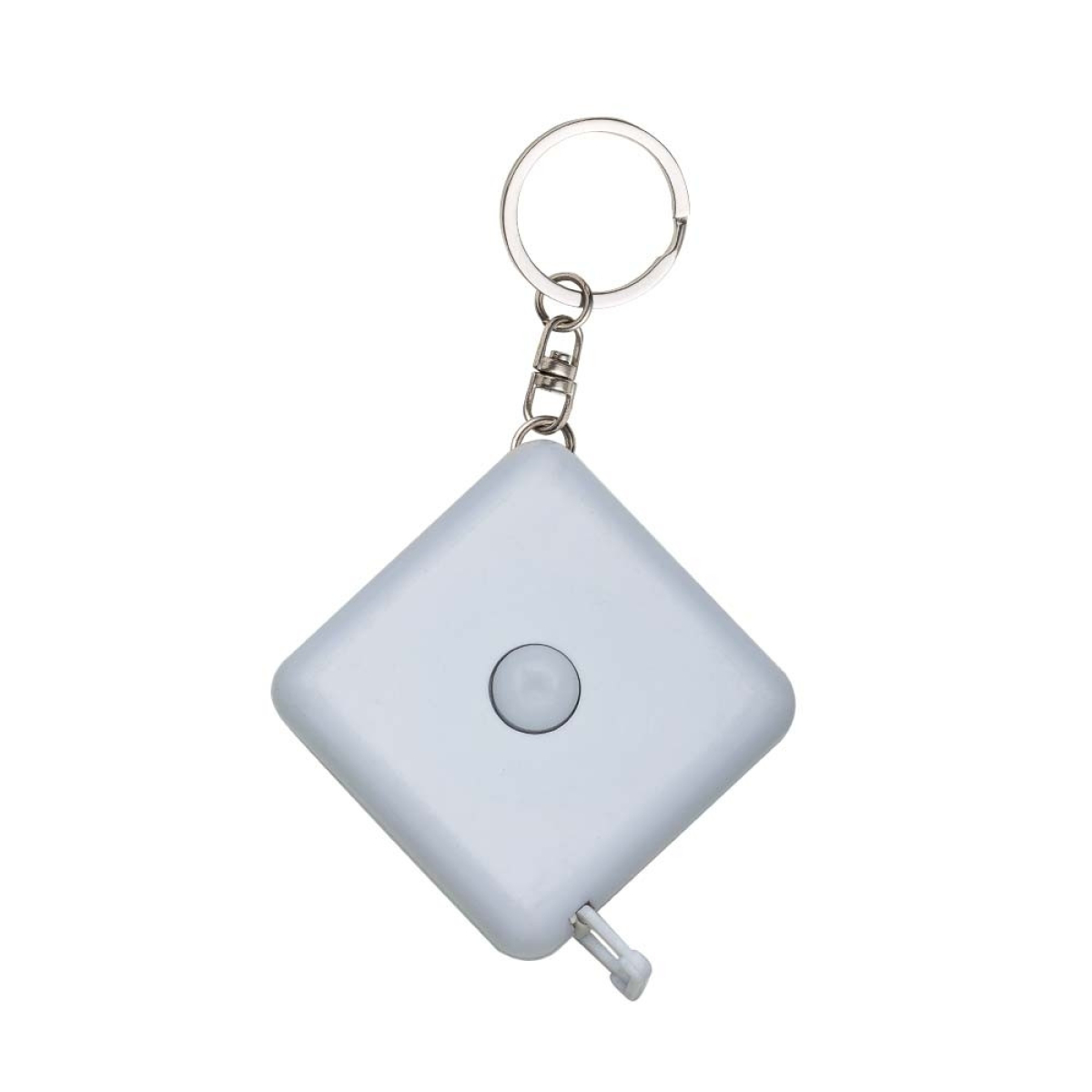 Descrição: Fita métrica de 1 metro em plástico quadrangular, frente lisa e verso com botão (trava). Acompanha chaveiro.