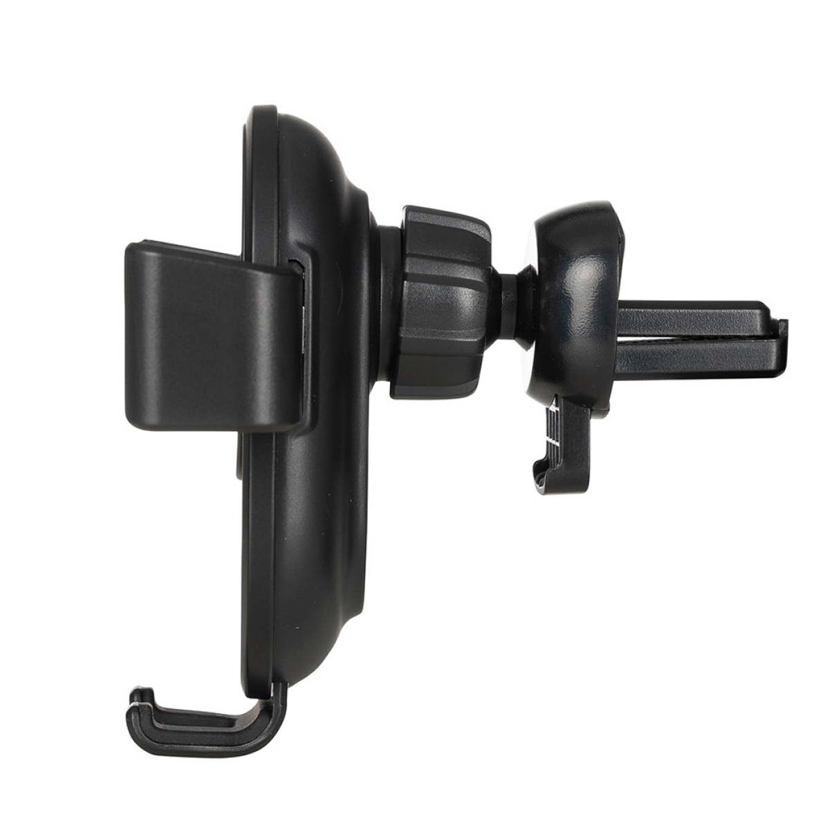 Descrição: Suporte veicular com carregamento por indução. O produto contém hastes de ajuste automático. Acompanha presilha para encaixe na saída de ar do veículo e cabo USB para ativação do modo indução.