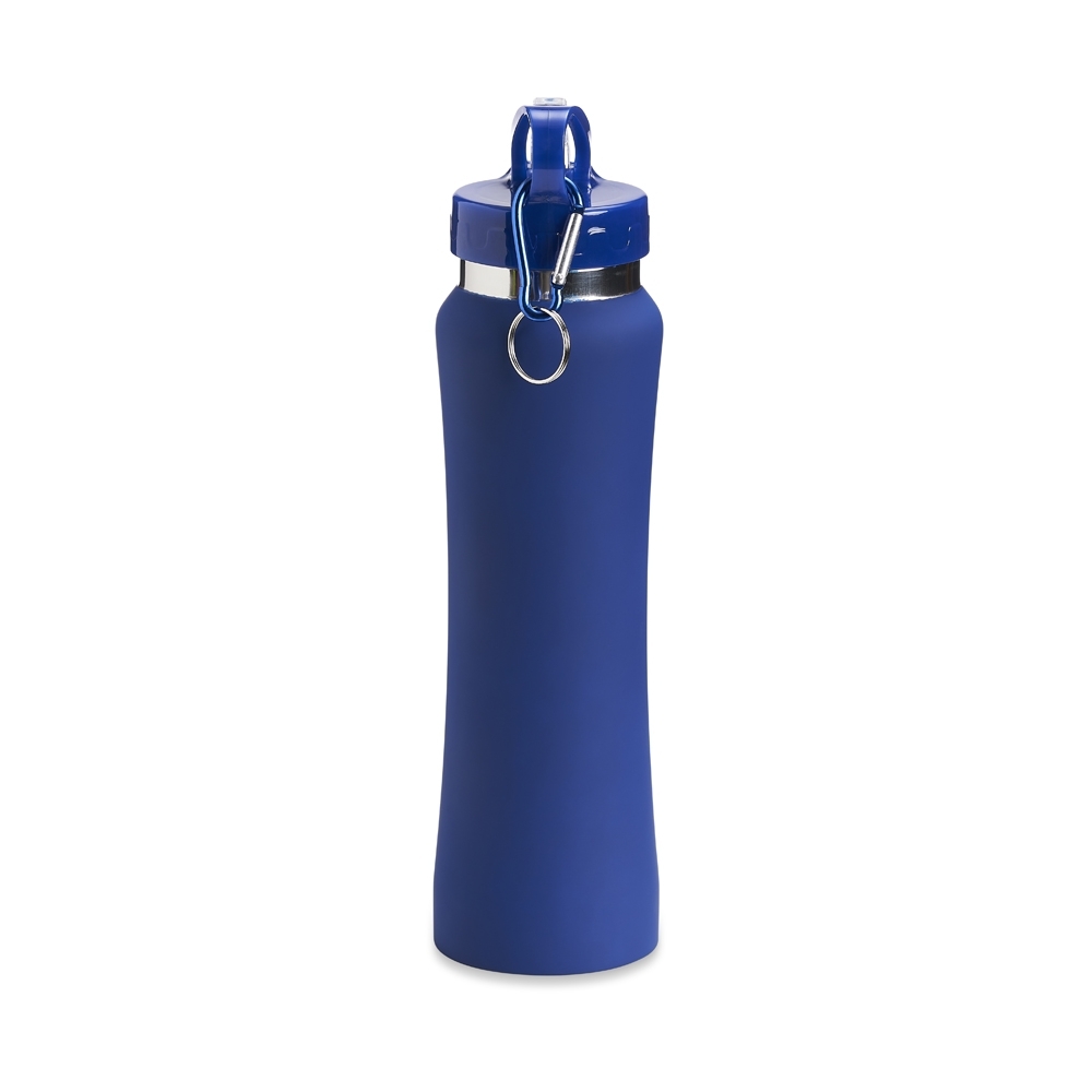 Descrição: Squeeze de inox com capacidade de 750ml, tampa plástica com bico de canudo. Acompanha mosquetão.