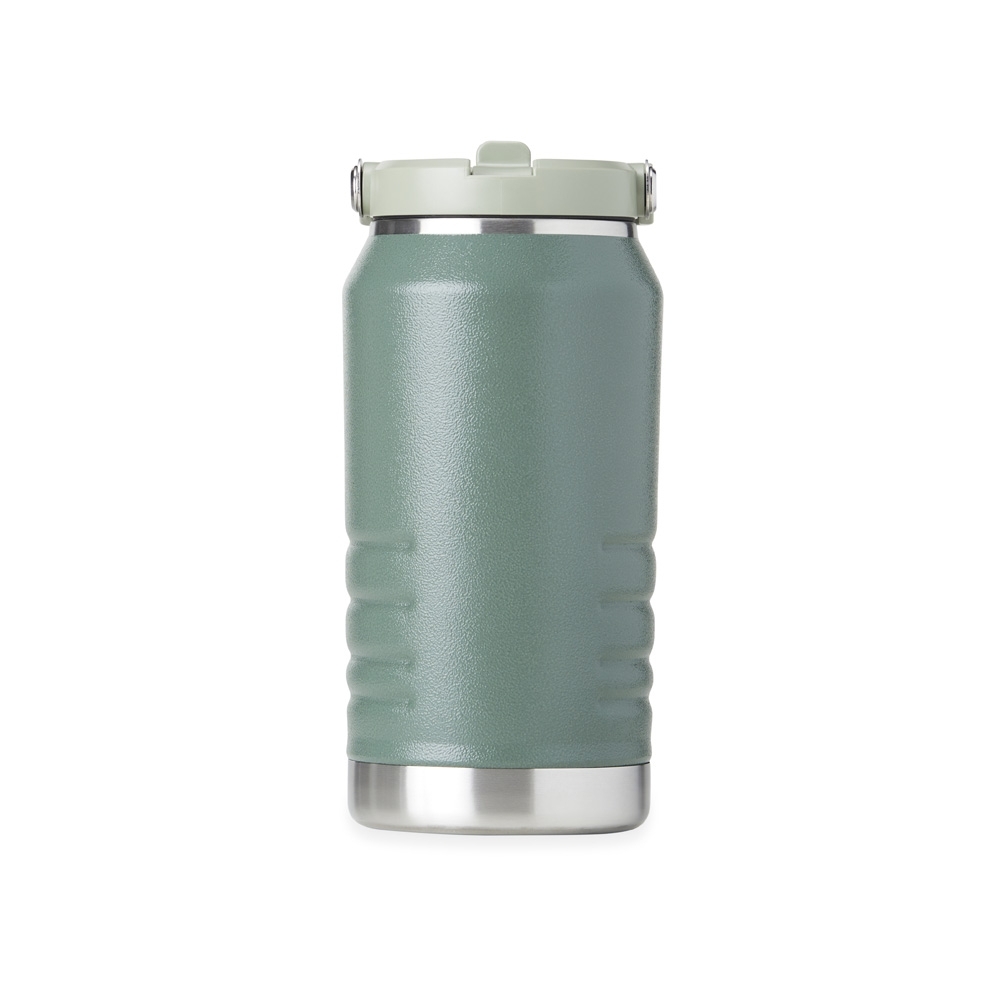 Descrição: Garrafa térmica feita em inox 304 com parede dupla, capacidade de 1,1 litros. Com alça para transporte, a tampa contém bico flip e canudo interno.