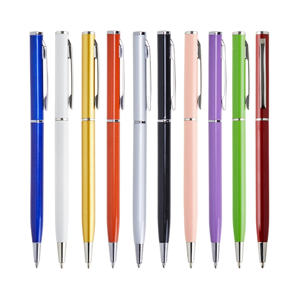Descrição: Caneta metálica com carga esferográfica azul 1.0mm e acionamento por rotação.