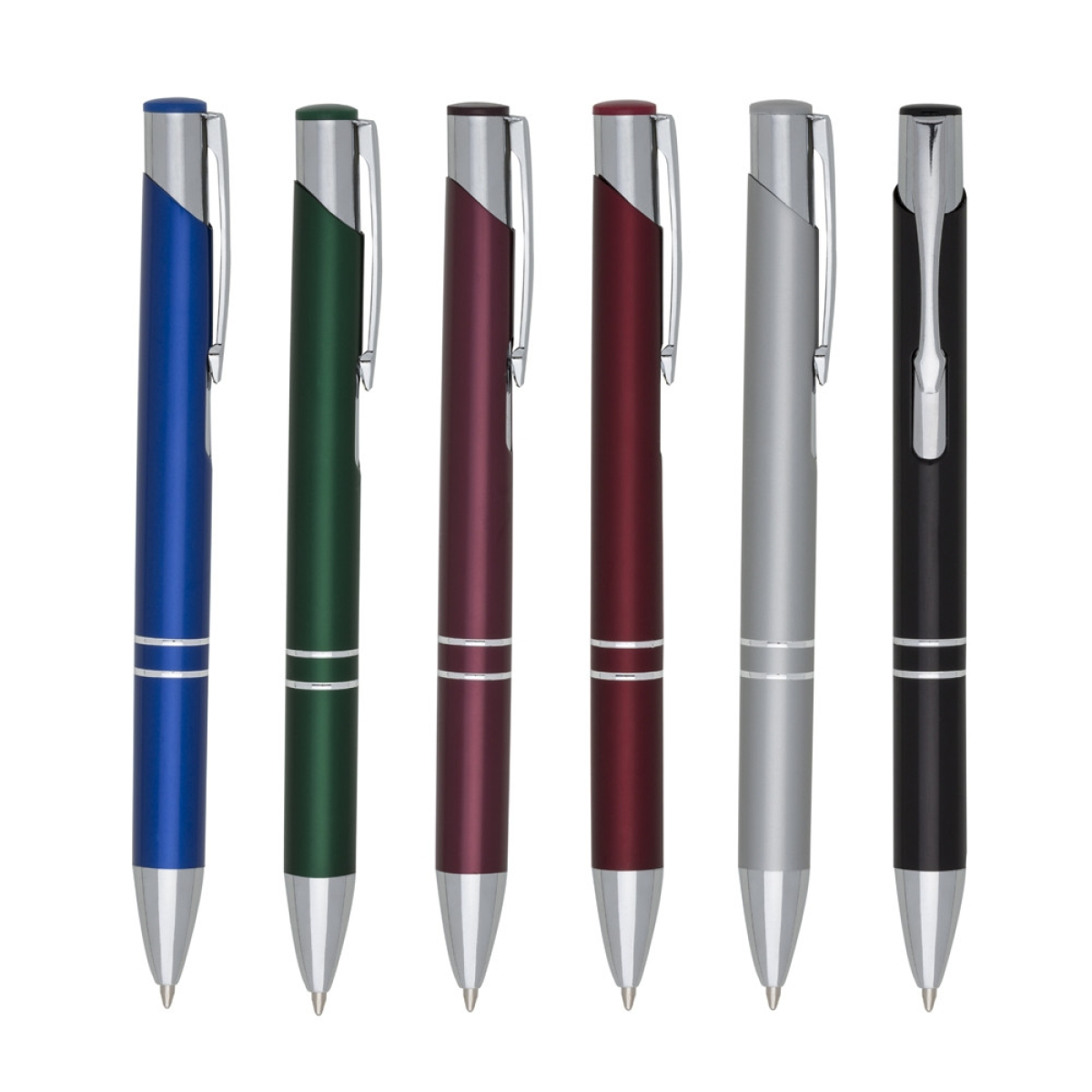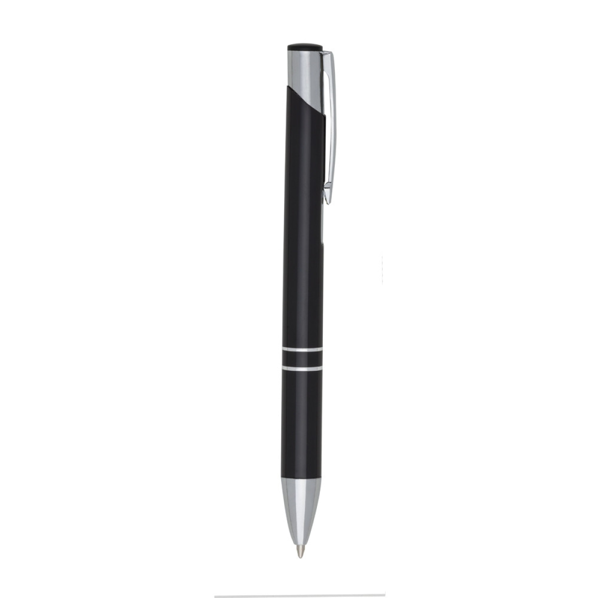 Descrição: Caneta metálica com carga esferográfica azul e acionamento por clique.