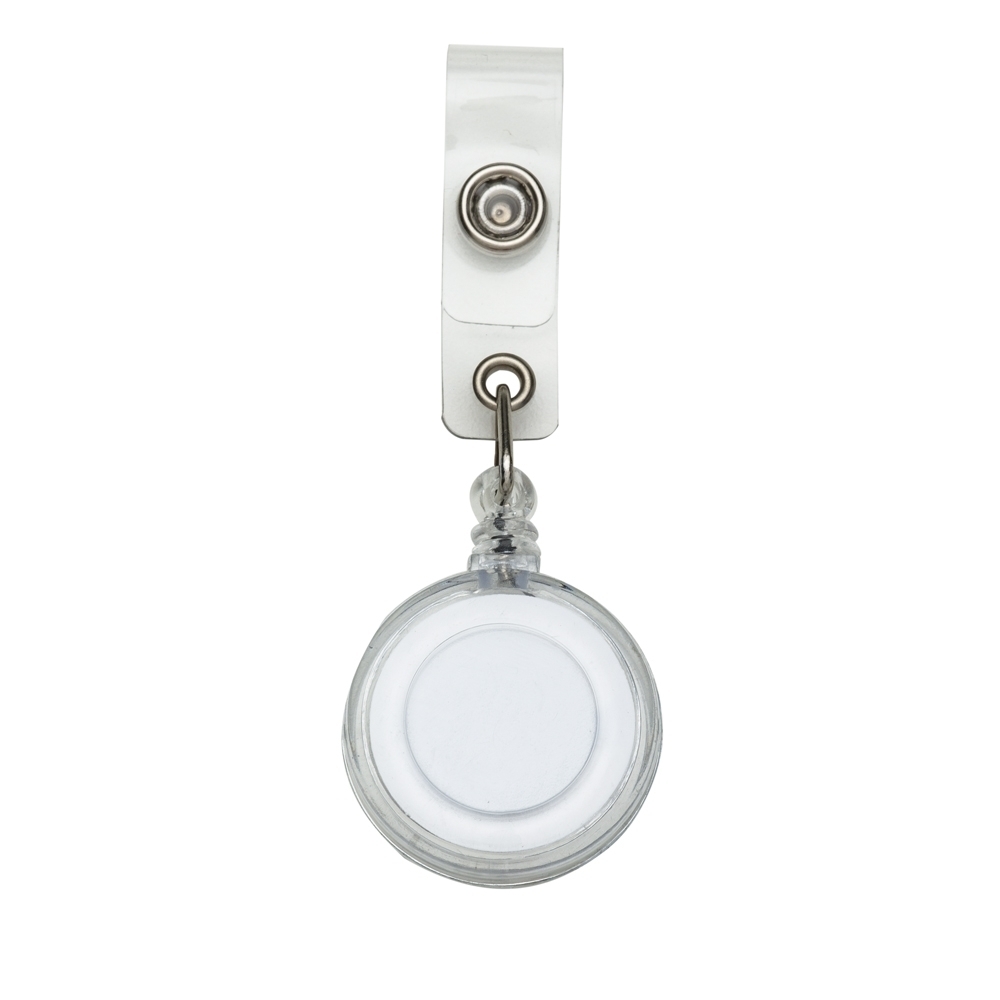 Descrição: Porta crachá retrátil plástico, cores leitosas e translúcidas. Roller clip possui sistema extensor em nylon que após puxar é recolhido automaticamente. Possui presilha metálica na parte traseira e alça plástica com botão.
