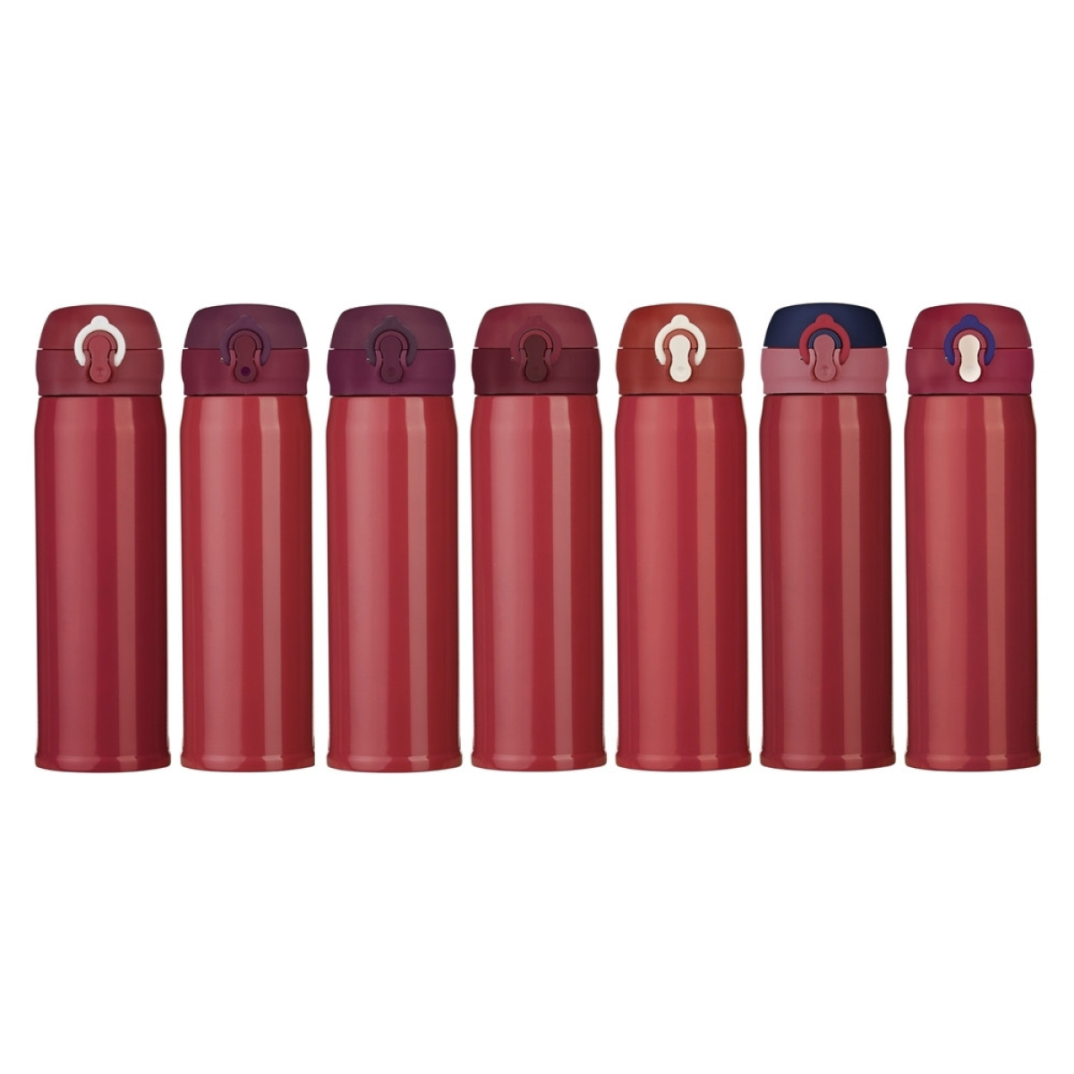 Descrição: Garrafa térmica feita em inox com parede dupla, capacidade de 400ml. Tampa com trava de segurança e botão de acionamento. OBS.: CONSULTE A VARIAÇÃO DE CORES ATRAVÉS DA PALETA DE CORES!