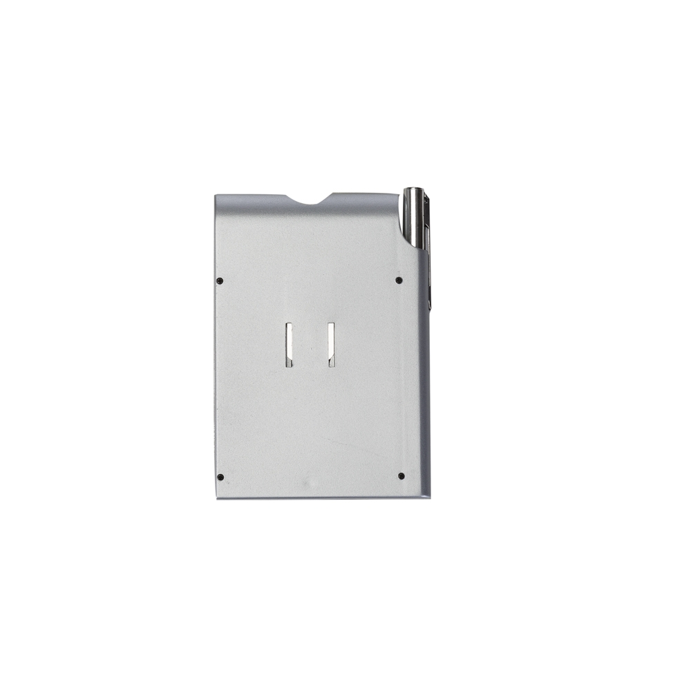 Descrição: Calculadora plástica de 8 dígitos com porta cartão lateral. Acompanha caneta plástica prata com clip de metal na parte superior. Calculadora solar.