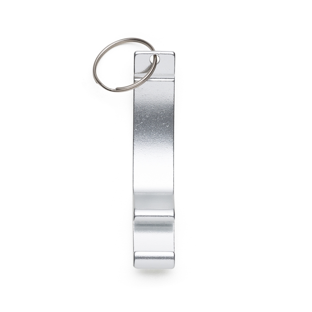 Descrição: Chaveiro abridor de metal brilhante formato “pé de galinha”.