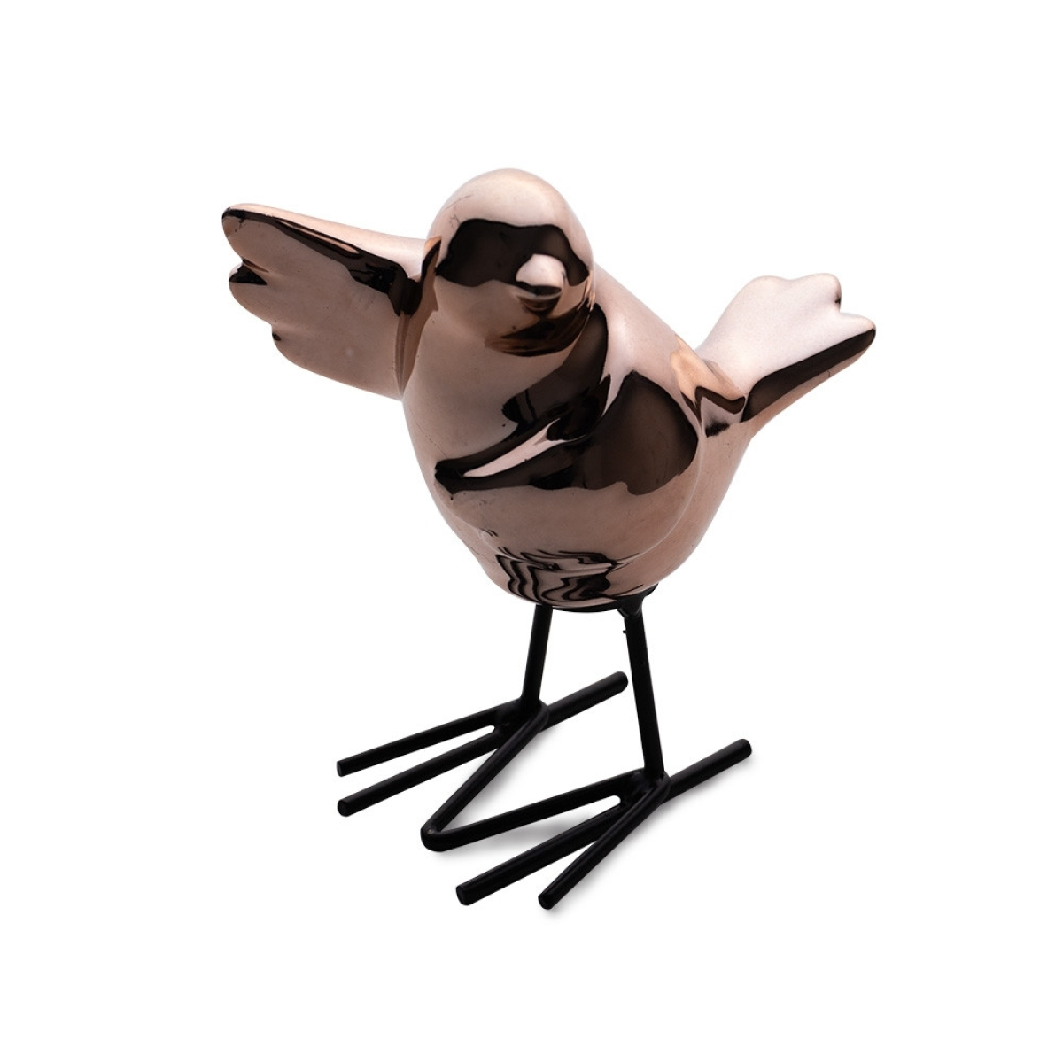 Descrição: Enfeite decorativo de Porcelana em formato de Passarinho com pés de ferro.